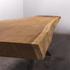Iroko is een prachtig hardhout met een schitterende, gelijkmatige kleuring. Het tafelblad is gemaakt uit één stuk massief Iroko hout dat de vorm van de boom volgt. Het hout heeft een bijzondere rozerode kleur die na verloop van tijd iets donkerder wordt. De buitenkant heeft een herkenbare lichte tint. Als het zonlicht erop schijnt, ontstaat er een stralende gouden glans op het tafelblad. Iroko hout heeft een karakteristiek regelmatig strepenpatroon van de groei en ziet er daardoor strak en edel uit. Het hout is zeer duurzaam en slijtvast en zal jaren meegaan.