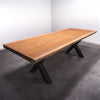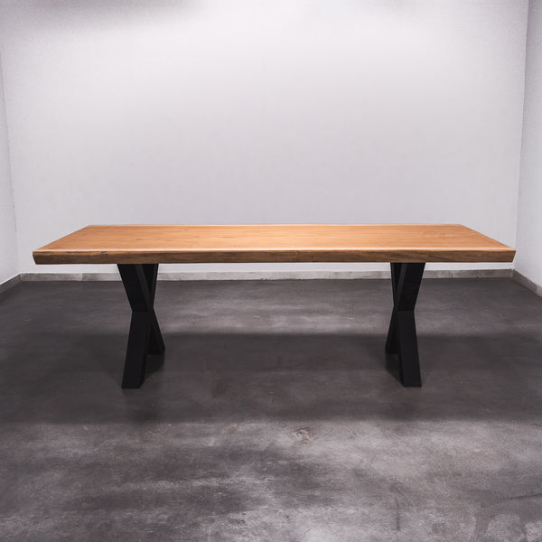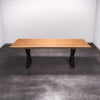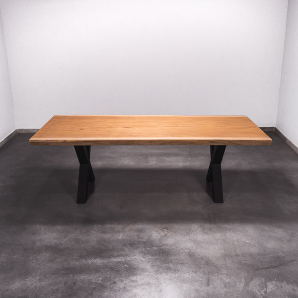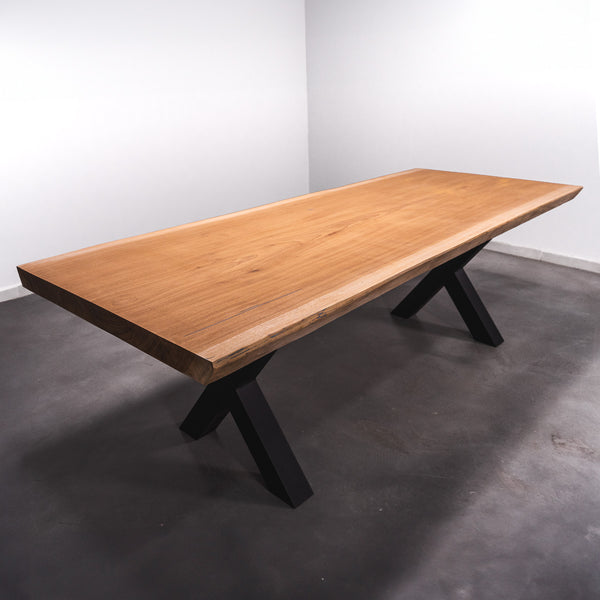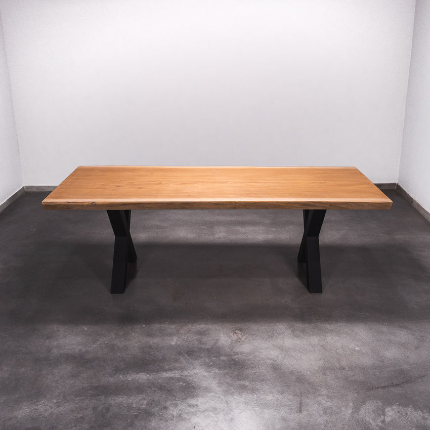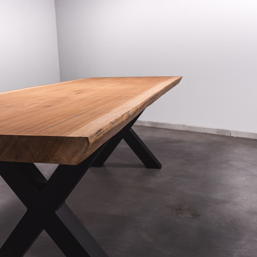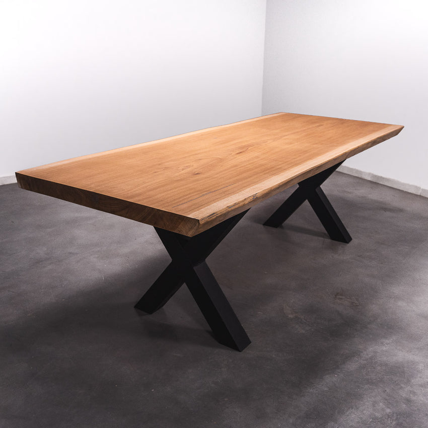 De tafel is gemaakt uit één stuk massief Sipo-hout en is 7 cm dik. Daardoor is het hout zeer duurzaam en sterk. Natuurlijk willen wij alleen het beste voor onze klanten, en daarom wordt het hout tot 10 / 12% gedroogd. De onderkant is versterkt met stalen profielen om ervoor te zorgen dat het hout nauwelijks beweegt.