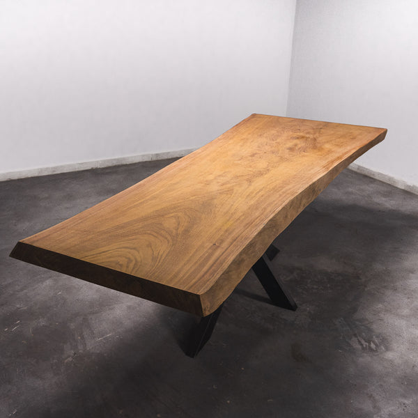 Deze prachtige boomstamtafel is gemaakt van hardhout, genaamd tali. Het hout heeft een bijzondere bruinrode kleur en de buitenkant een donkere goudgrijze kleur. Het tafelblad is gemaakt uit één stuk massief tali hout dat de vorm van de boom volgt. Tali hout staat bekend om zijn stevigheid en omdat wij het tafelblad uit het beste deel van de stam nemen, zorgen wij ervoor dat er een schitterende tafel ontstaat.