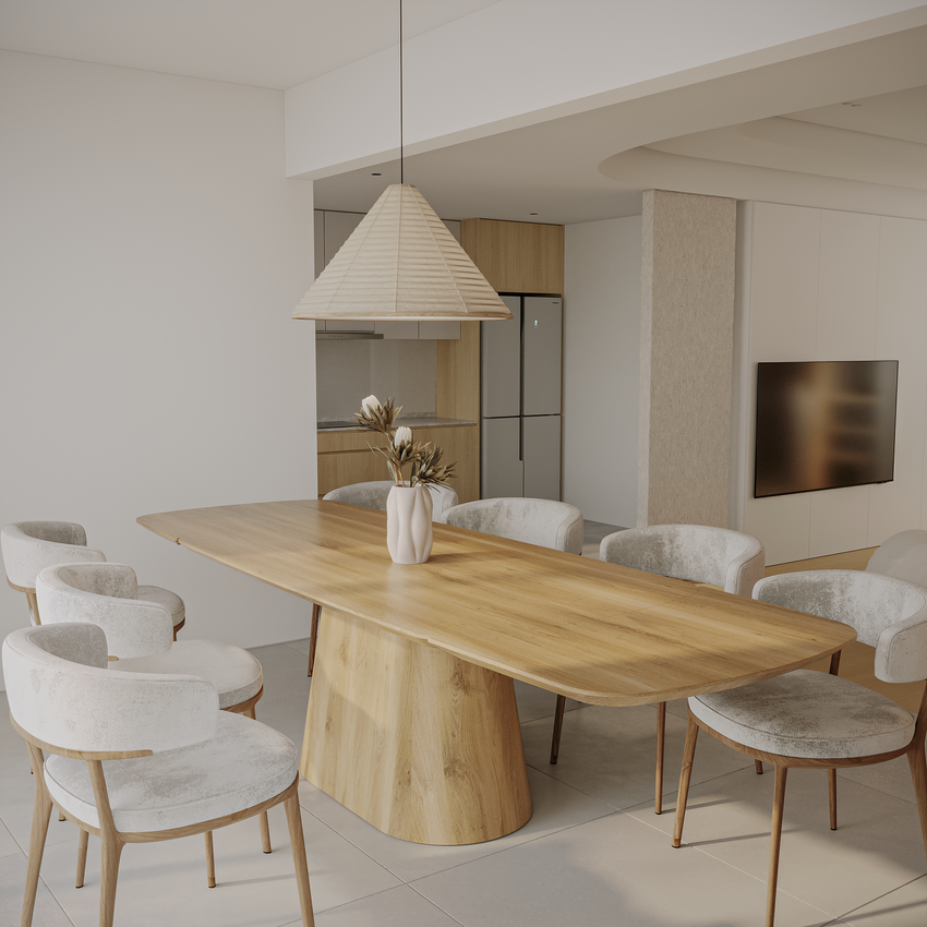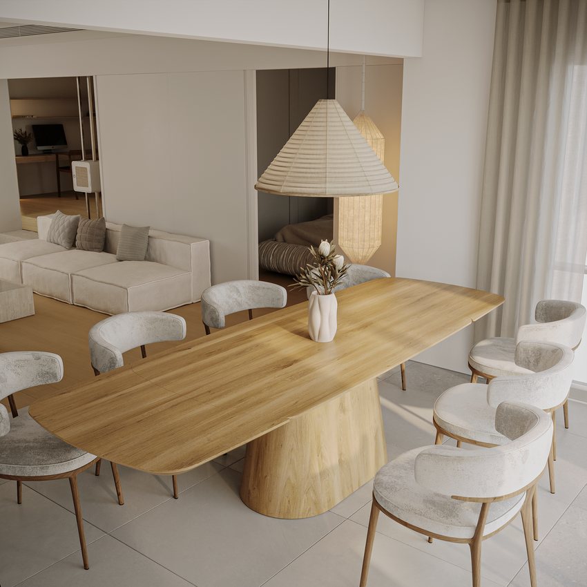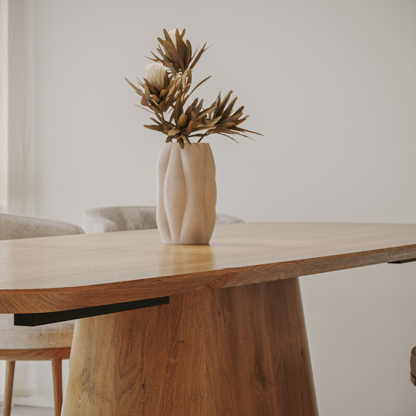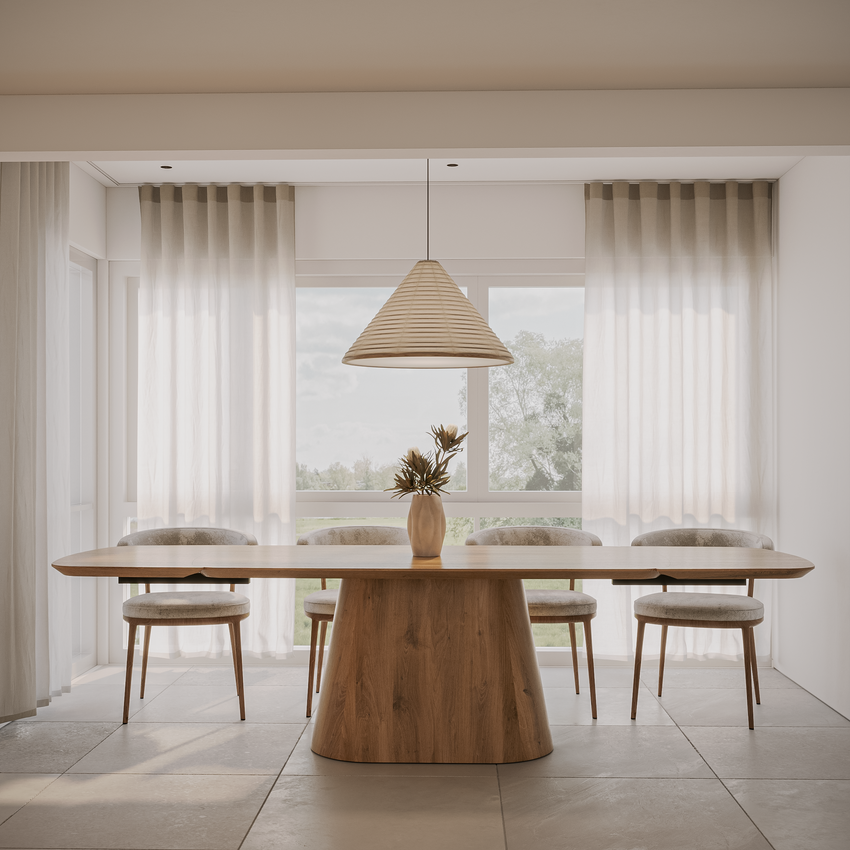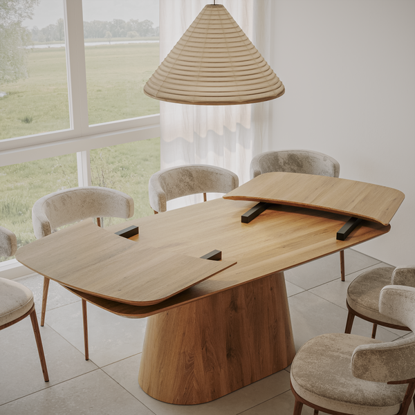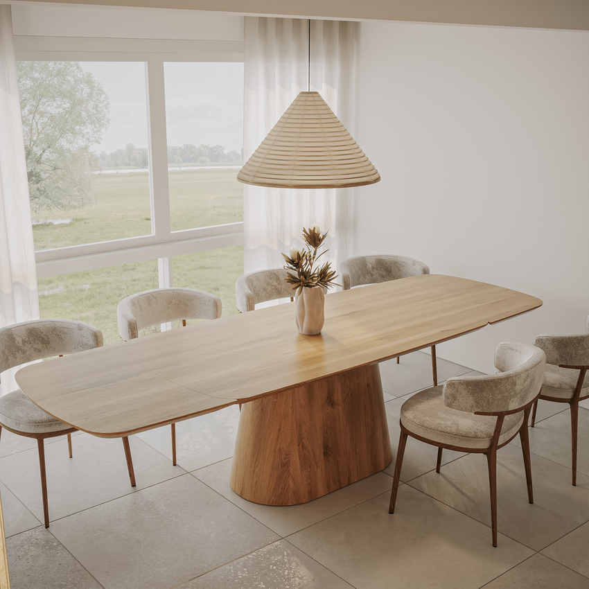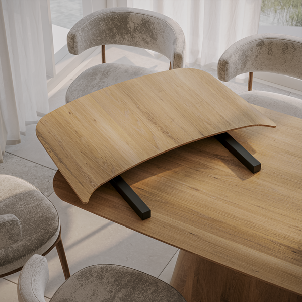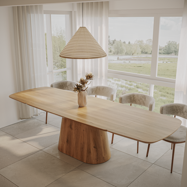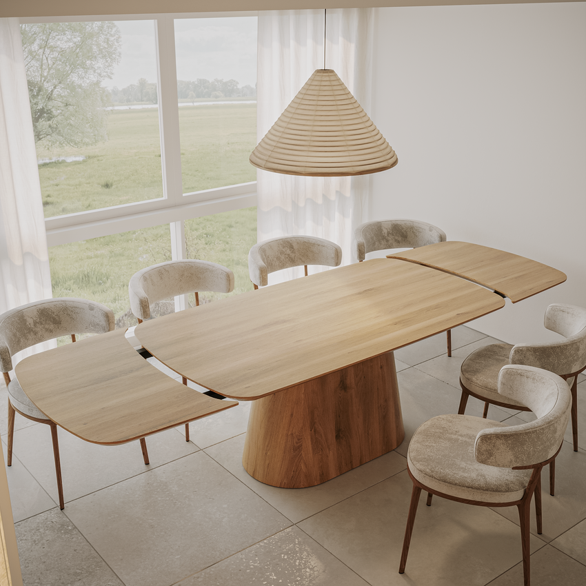 Deens-ovale eettafel „Romeo“ van massief eikenhout met aansteekplaten