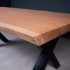 Door het gebruik van hardwaxolie krijgt de tafel een prachtig, mat uiterlijk. De natuurlijke bestanddelen van de hardwaxolie dringen diep door in de houtporiën, waardoor de structuur en de nerven van de tafel nog beter zichtbaar worden. Bovendien is de tafel ook zeer goed beschermd tegen vlekken en vloeistoffen. In de loop der jaren slijt de bovenste laag van de beschermlaag. Als u dan kleine, vervaagde plekken op het tafelblad ziet, raden wij u aan het tafelblad te behandelen met onze Saicos onderhouds-wax. De nabehandeling is zeer eenvoudig. Na het aanbrengen van de nieuwe beschermlaag, kunt u het overtollige met een doek weghalen.
