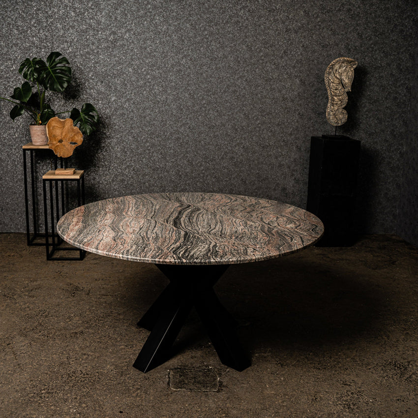 De ronde eettafel Elena bestaat uit graniet en is een echt pronkstuk door zijn tijdloze design. Het hoogwaardige materiaal en het goede vakmanschap zullen jarenlang plezier geven.
