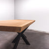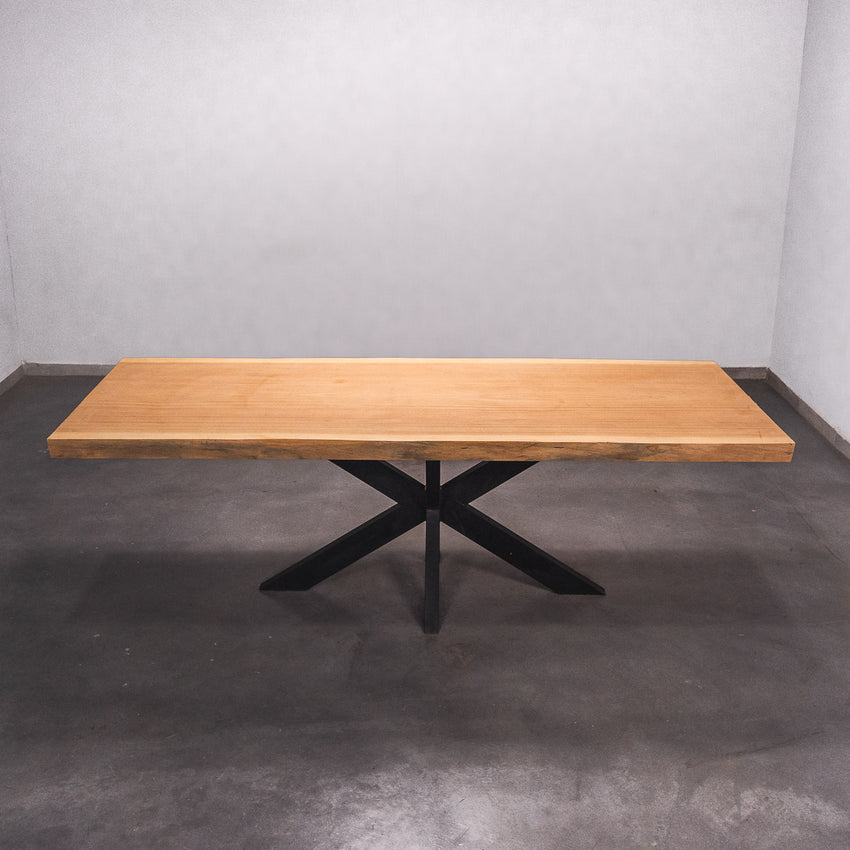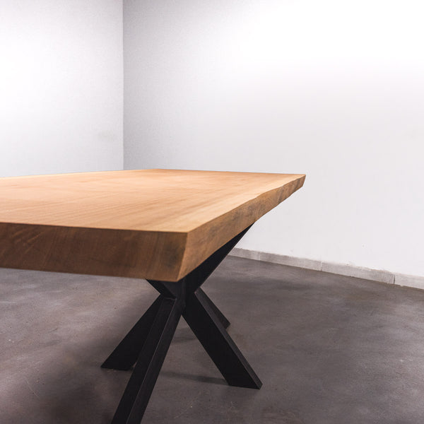 Door het gebruik van hardwaxolie krijgt de tafel een prachtig, mat uiterlijk. De natuurlijke bestanddelen van de hardwaxolie dringen diep door in de houtporiën, waardoor de structuur en de nerven van de tafel nog beter zichtbaar worden. Bovendien is de tafel ook zeer goed beschermd tegen vlekken en vloeistoffen. In de loop der jaren slijt de bovenste laag van de beschermlaag. Als u dan kleine, vervaagde plekken op het tafelblad ziet, raden wij u aan het tafelblad te behandelen met onze Saicos onderhouds-wax. De nabehandeling is zeer eenvoudig. Na het aanbrengen van de nieuwe beschermlaag, kunt u het overtollige met een doek weghalen.