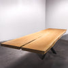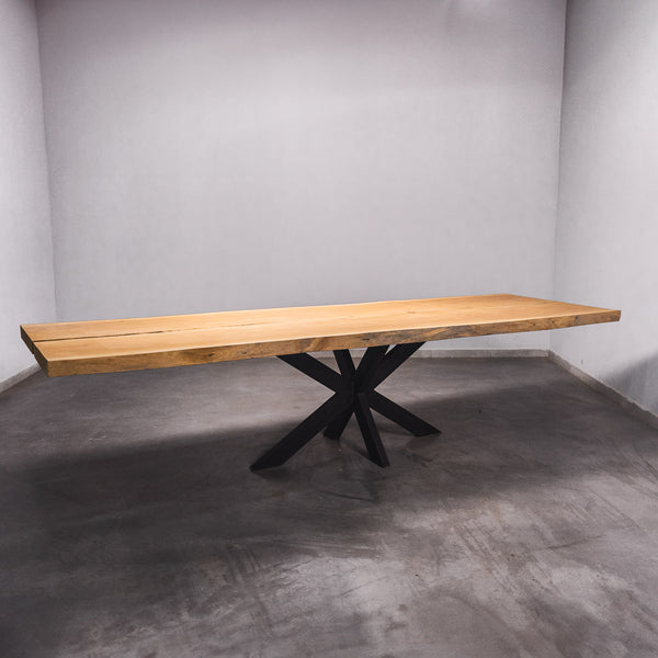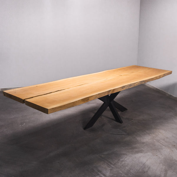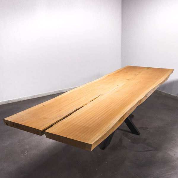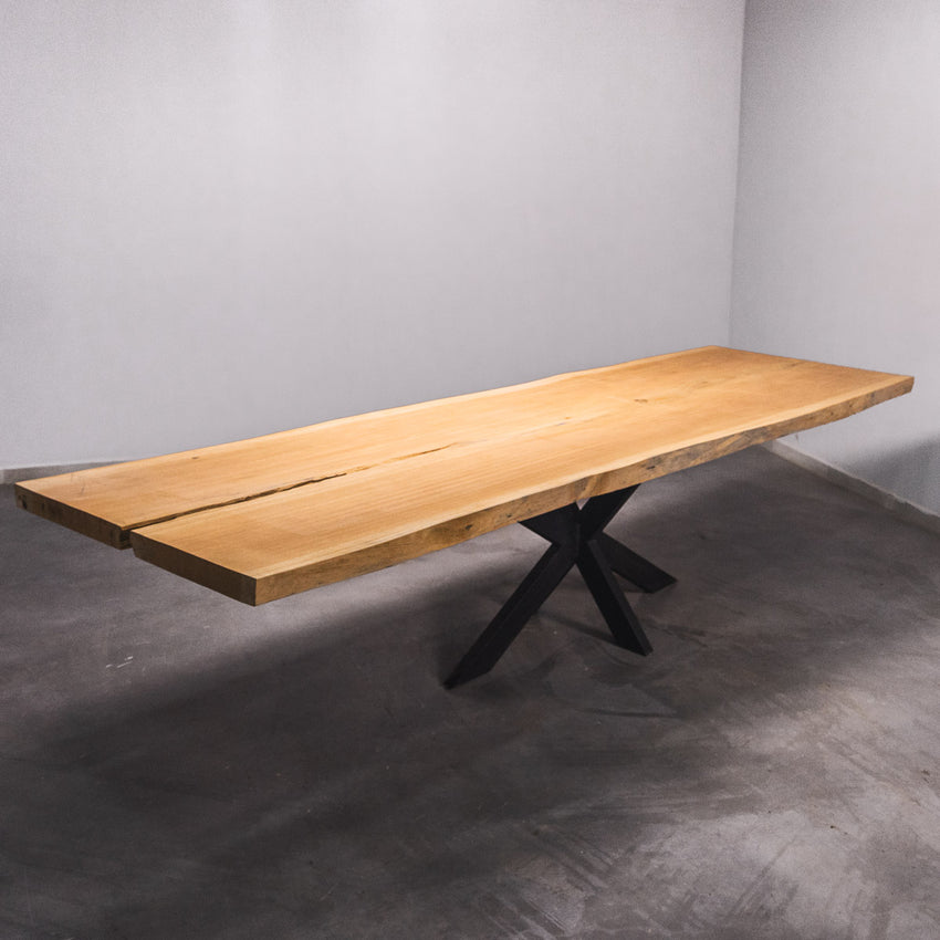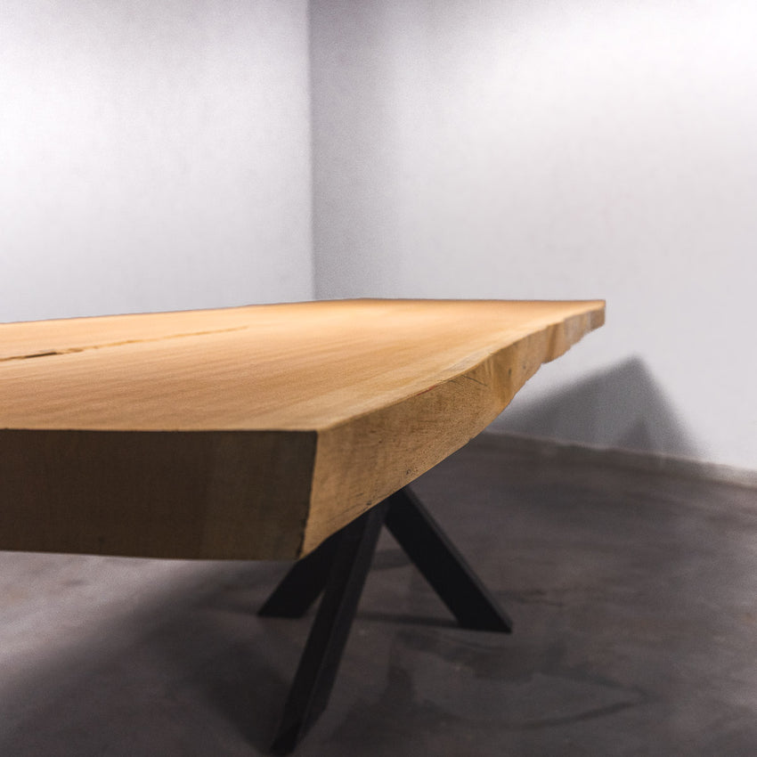 De tafel is gemaakt uit één stuk massief sapelli hout en is 7 cm dik. Daardoor is het hout zeer duurzaam en sterk. Natuurlijk willen wij alleen het beste voor onze klanten, en daarom wordt het hout tot 10 / 12% gedroogd. De onderkant is versterkt met stalen profielen om ervoor te zorgen dat het hout nauwelijks beweegt.